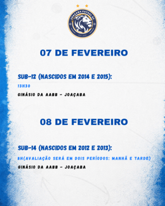 As avaliações serão realizadas entre os dias 31 de janeiro e 8 de fevereiro, em Joaçaba, no Ginásio de Esportes Professor Edinho e no Ginásio da AABB. As seletivas serão conduzidas pelos professores das categorias de base e têm como objetivo definir os elencos que representarão o clube em competições organizadas pela Liga Catarinense e pela Fesporte, como a Olimpíada Estudantil Catarinense (Olesc), os Jogos Escolares de Santa Catarina (Jesc) e os Joguinhos Abertos, entre outros campeonatos regionais.