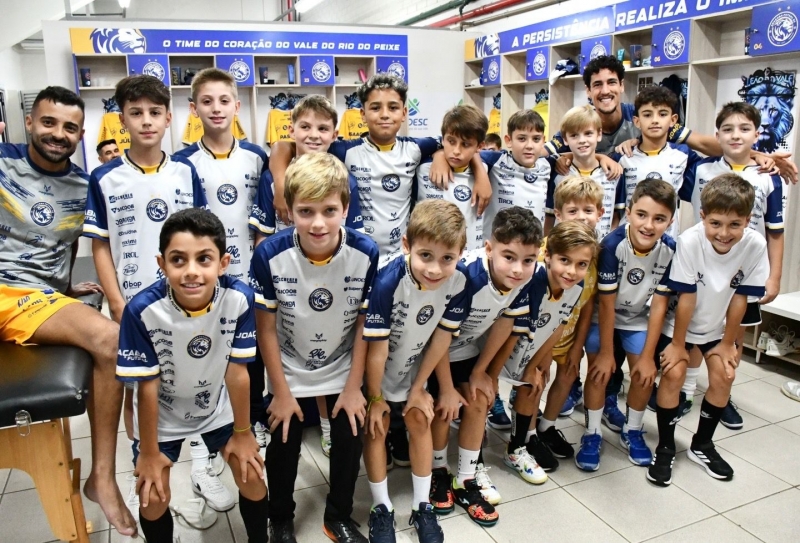 Atletas da Escola Joaçaba de Futsal vivenciam rotina do time profissional